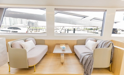 - Friendly Atmosphere on Board Huge Luxury Yacht: Spacious yacht setting perfect for socializing, relaxing, and creating unforgettable memories with Dubai's iconic landmarks as your sunset backdrop.
