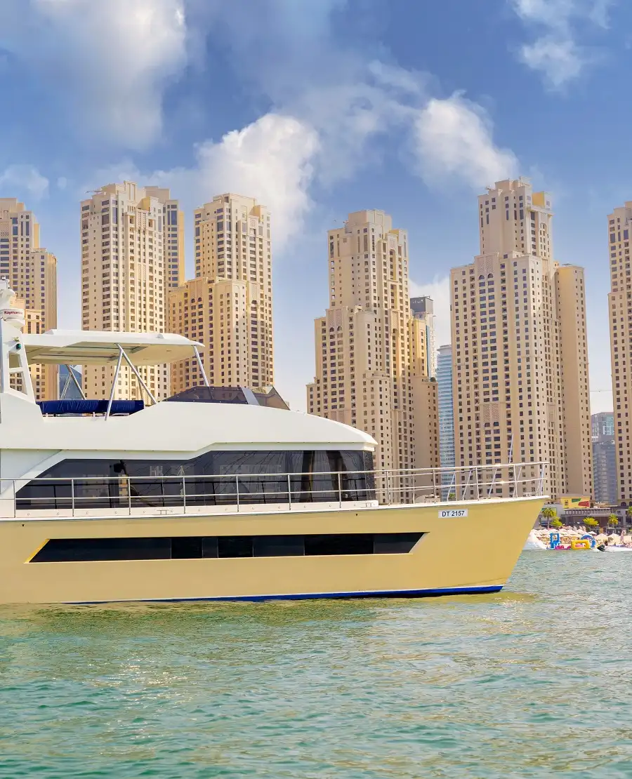 Enjoy a 3-hour Dubai yacht ride complete with freshly prepared breakfast or BBQ as you cruise along Dubai Marina, Harbour, and JBR. Take in breathtaking views of the city’s iconic skyline and relax in a modern, spacious yacht setting. Designed for travelers who want to combine gourmet dining with sightseeing, this Dubai yacht experience is ideal for memorable holidays and special moments.