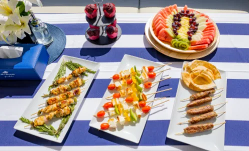 Your chosen meal enhances the experience. The morning luxury yacht tour includes a delightful breakfast spread. The afternoon departure features a classic BBQ lunch, both accompanied by refreshing soft drinks. Relax on deck as a virtual guide shares fascinating facts about Dubai's skyline. This premium Dubai yacht tour is the ideal way for couples, friends, and families to explore the city's famous coast in comfort and style.