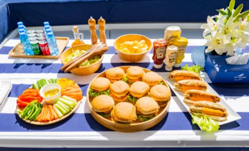 - Enjoy a delicious onboard breakfast or BBQ lunch with drinks.