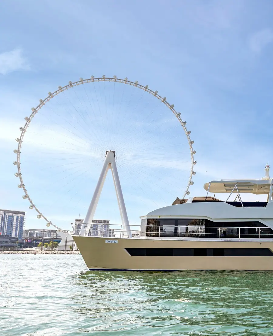 Sail on a luxury yacht and enjoy breathtaking views of Dubai's skyline against the shimmering waters of the Arabian Sea.