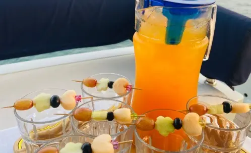 Luxury Shared Yacht Cruise with Drinks at Dubai Marina offers a 1-hour premium sailing experience along the iconic waterfront. Guests enjoy a shared yacht cruise with onboard music, refreshing drinks and water, and a relaxing atmosphere. A virtual guide is played through speakers highlighting Dubai Marina landmarks. Professional captain and crew ensure a safe journey with life jackets provided for all passengers.