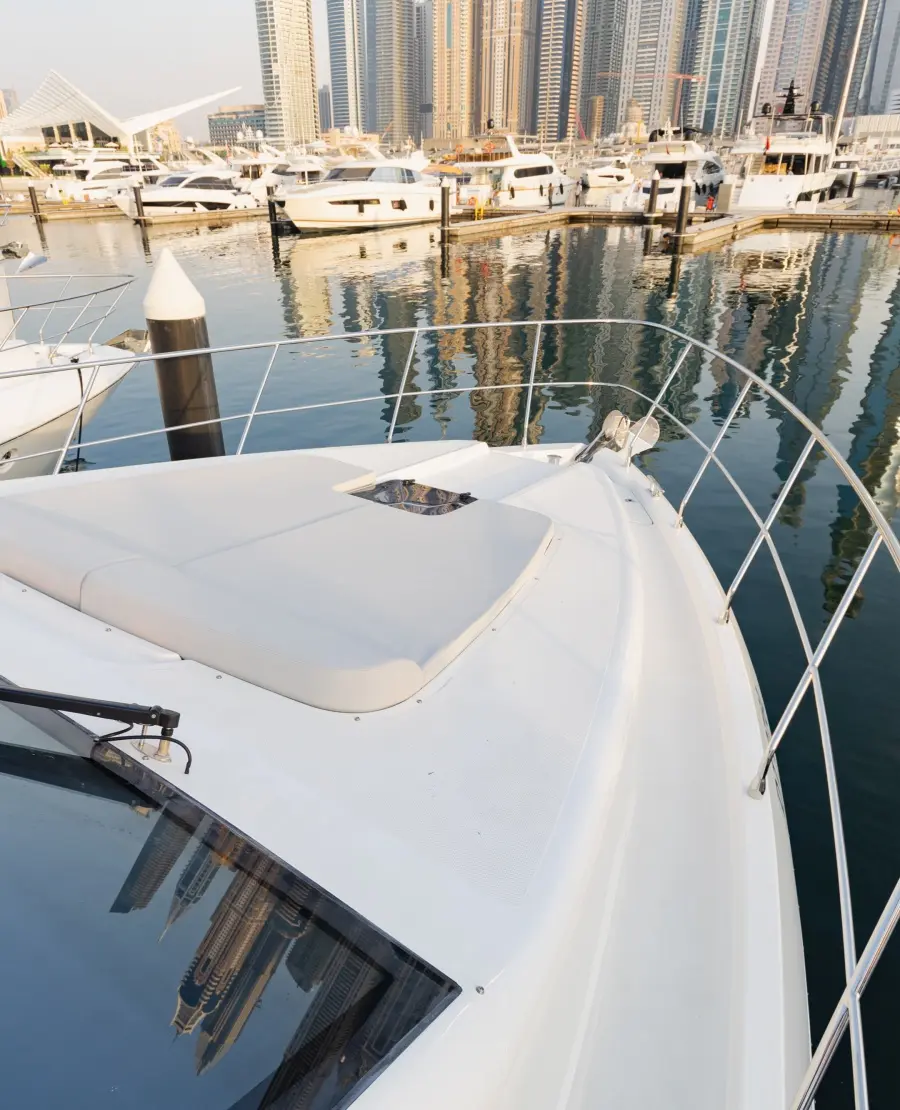 Cruise aboard a luxury yacht, taking in the magnificent views of Dubai's skyline reflected in the shimmering waters of the Arabian Sea