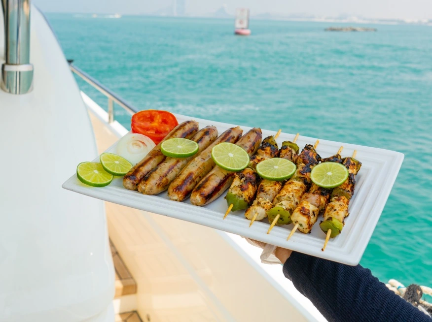 Experience a luxurious shared afternoon yacht tour in Dubai Marina with live BBQ and refreshing drinks. Cruise past iconic landmarks including Dubai Harbour, Ain Wheel, JBR, Burj Al Arab, and the serene lagoon. Perfect for friends, families, or couples seeking a unique maritime experience and breathtaking city views. Limited spots make this an exclusive adventure.